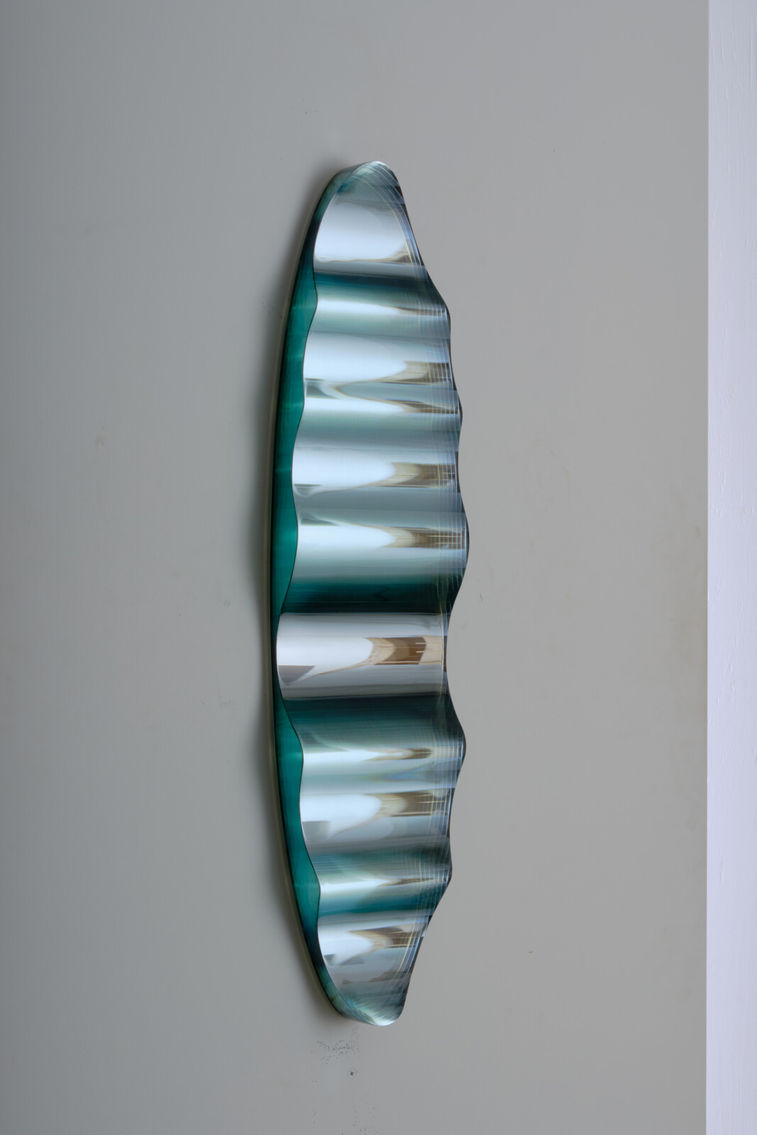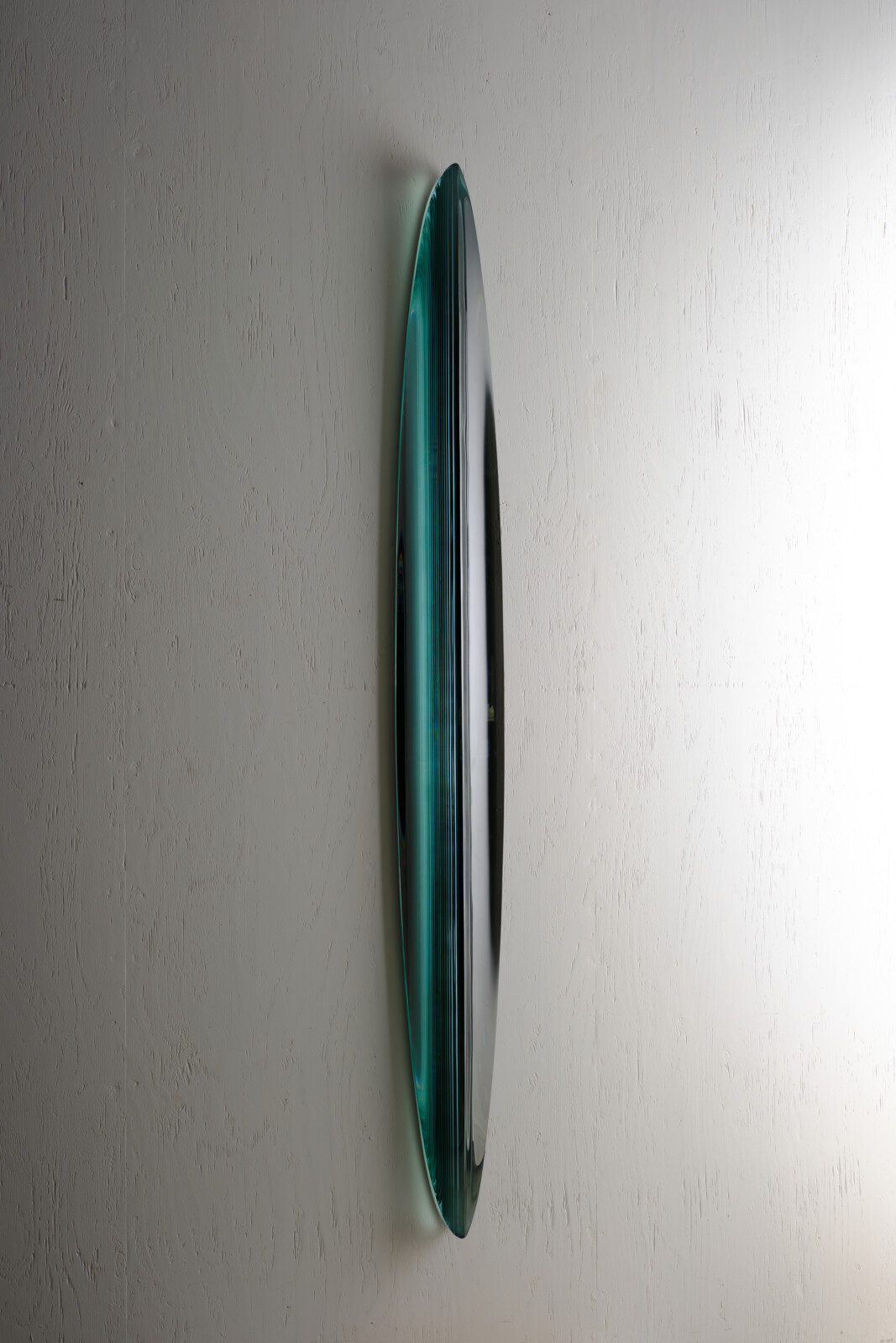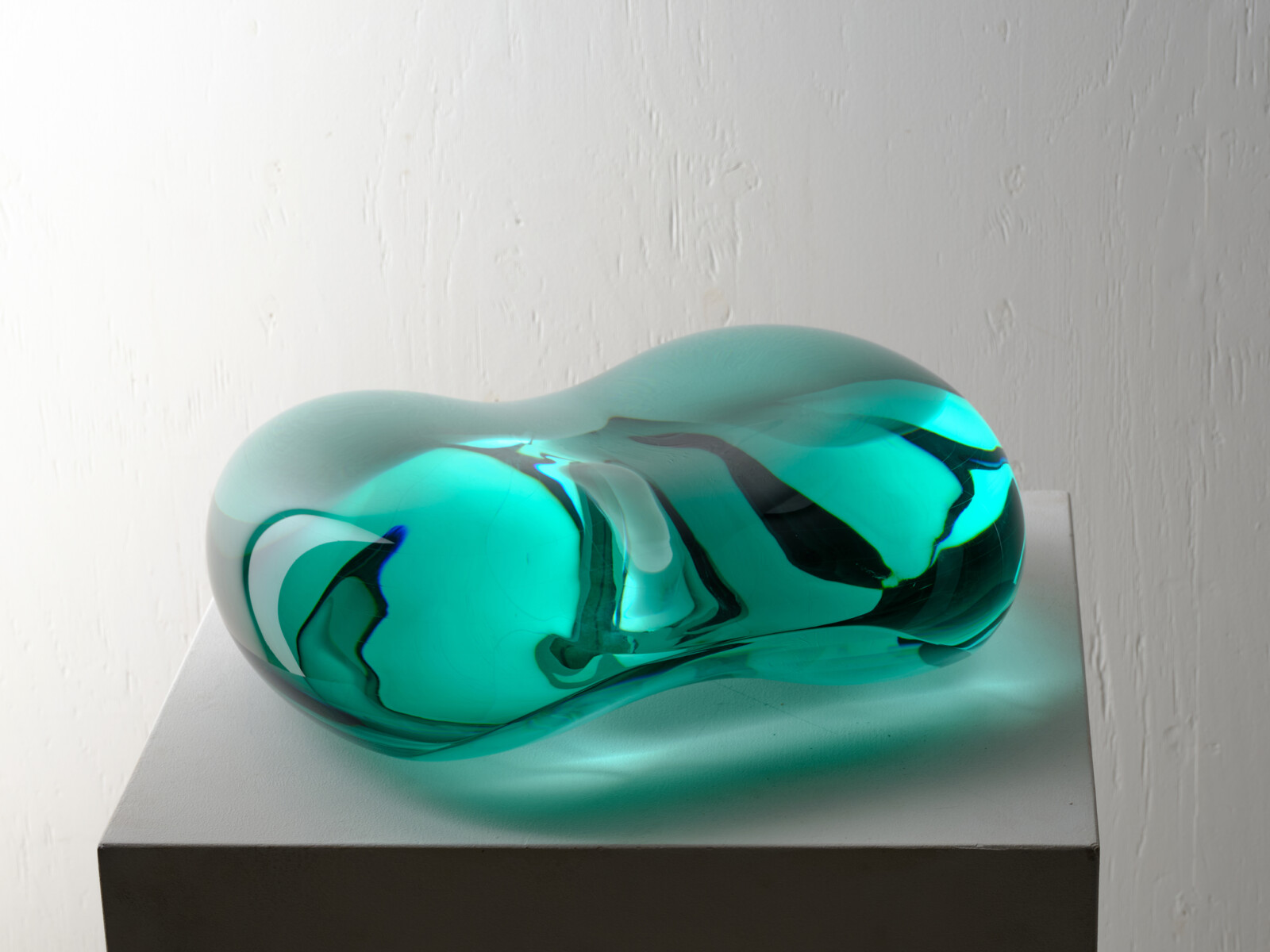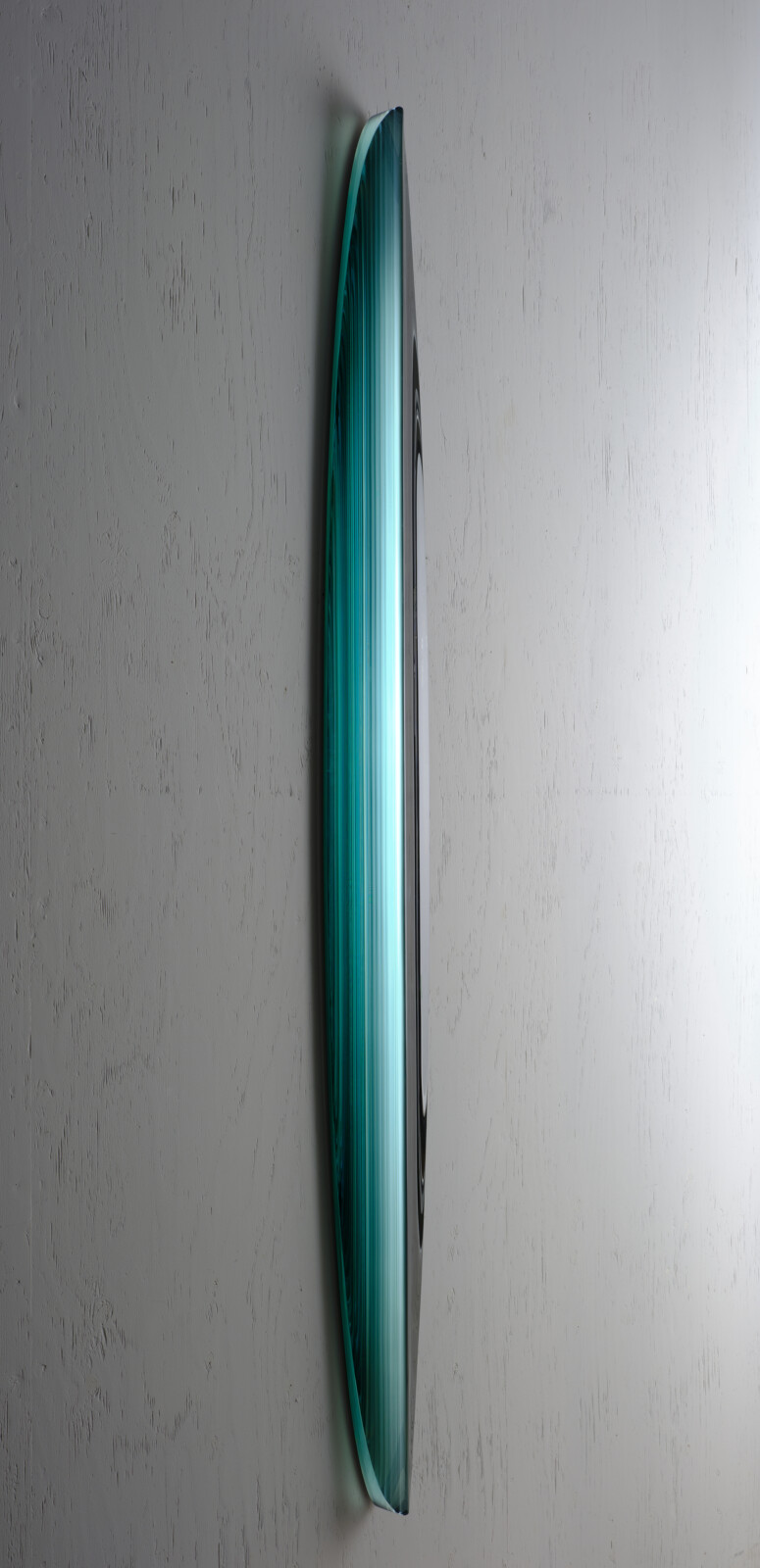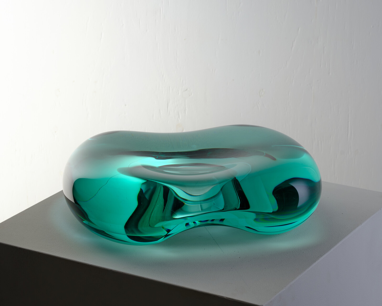 토시오 이에즈미는 판유리를 적층하고 깎아내는 라미네이팅 기법을 통해, 유리를 조각적 물질로 확장해온 일본 현대 유리예술의 대표 작가이다. 수십 겹의 판유리를 접합한 뒤 조각하듯 다듬는 그의 방식은, 층위가 만들어내는 빛의 깊이와 시간성을 드러낸다. 작품 내부에 삽입된 미러 구조는 주변 환경의 빛을 반사하며, 유리 내부에 또 다른 공간을 형성한다. 그는 인간의 시각이 가장 민감하게 반응하는 청록 계열 색을 중심으로, 빛의 반사와 흡수를 극대화한다. 그의 작업은 유리를 단순한 투명 재료가 아닌, 밀도와 무게를 지닌 조형 물질로 인식하게 만든다. 국제유리전 가나자와 등에서 다수의 주요 상을 수상했다. 작품은 Corning Museum of Glass, LACMA, 일본 국립근대미술관 등 세계 주요 기관에 소장되어 있다. 자연과 빛, 구조를 결합한 조형 언어로 국제적 명성을 쌓아왔다.