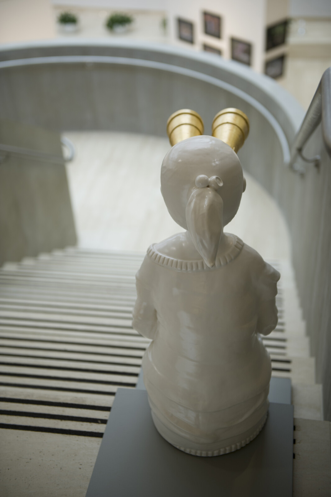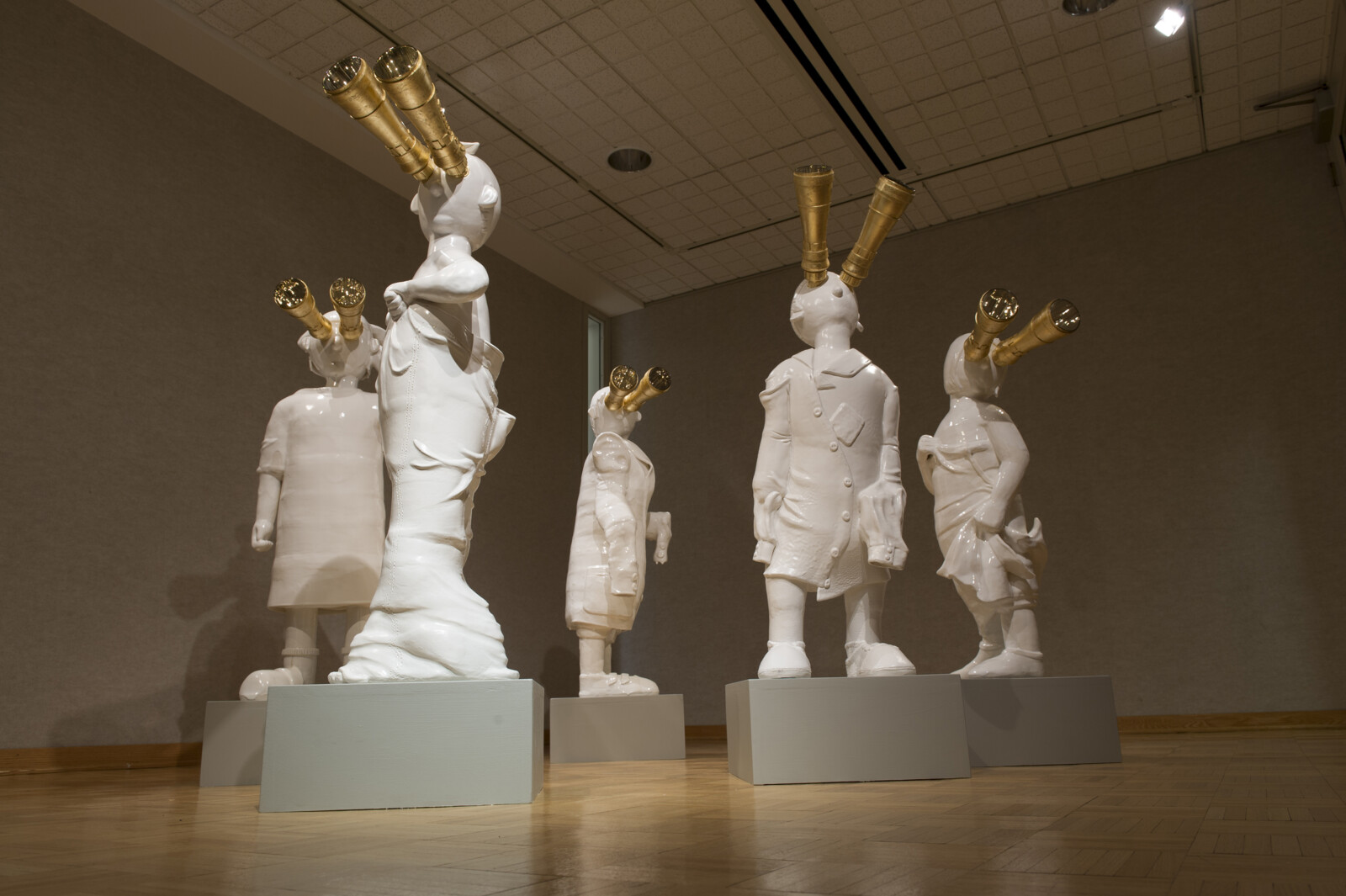 김남두는 유리와 도자를 결합한 조형 작업을 통해 현대 사회의 경쟁 구조와 물질적 욕망, 그리고 그로부터 파생되는 긴장을 탐구한다. 그의 작업은 장식성과 조형성을 동시에 지닌 인물 형상을 중심으로, 사회적 구조를 은유하는 서사적 장면을 구축한다. 대표작인 Golden Binoculars 시리즈는 시선과 권력, 인식의 구조를 상징적으로 드러내며, 관람자의 위치와 시각적 권한을 전복한다. Present 연작에서는 도자 인체 위에 유리 구조를 결합해 욕망과 통제, 기계적 질서가 결합된 동시대적 인간상을 제시한다. 재료의 대비는 감각적 아름다움과 비판적 메시지를 동시에 강화한다. 한국, 미국, 유럽, 일본 등에서 다수의 전시에 참여하며 국제적 활동을 이어가고 있다. 작품은 독일 Alexander Tutsek-Stiftung Museum 및 국내외 주요 컬렉션에 소장되어 있다. 현재 미국을 기반으로 활동하고 있다.